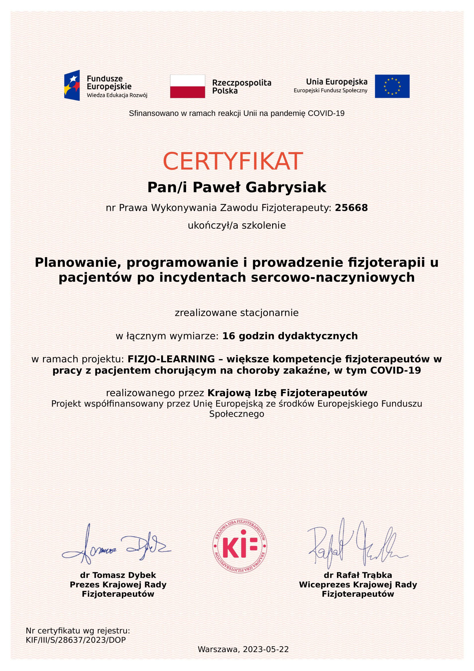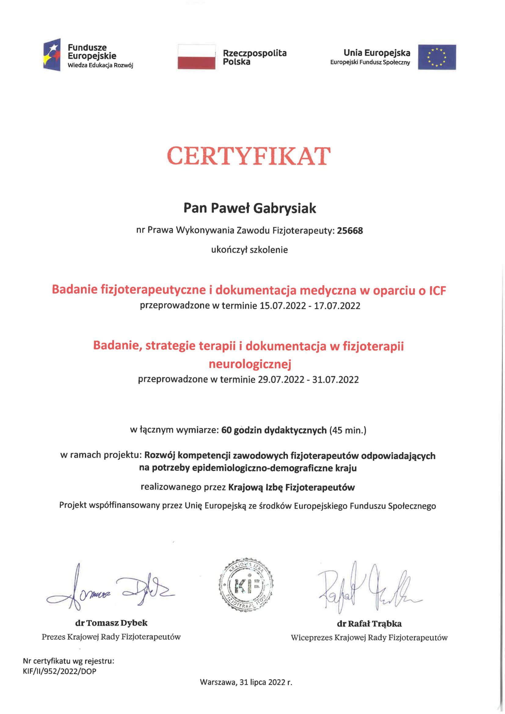 Ukończyłem kursy z zakresu rehabilitacji neurologicznej, terapii manualnej, terapii powięziowej i masażu (więcej w zakładce Ukończone kursy). Zajmuję się rehabilitacją pacjentów ze schorzeniami neurologicznymi, ortopedycznymi, kardiologicznymi, pulmonologicznymi, po zabiegach chirurgicznych oraz u pacjentów po przejściu infekcji covid 19.