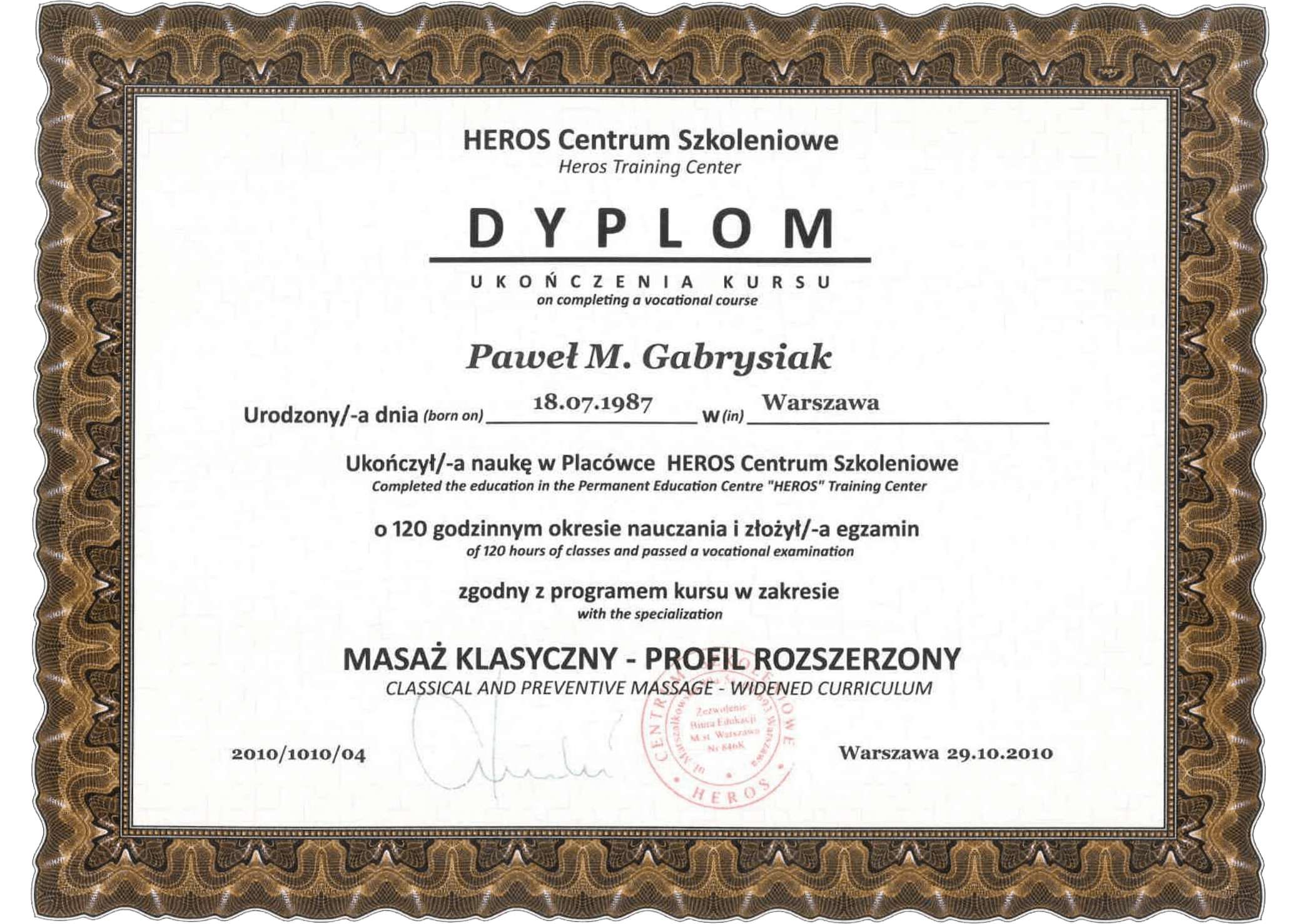 Oprócz tego wykonuję masaż klasyczny, sportowy i relaksacyjny.